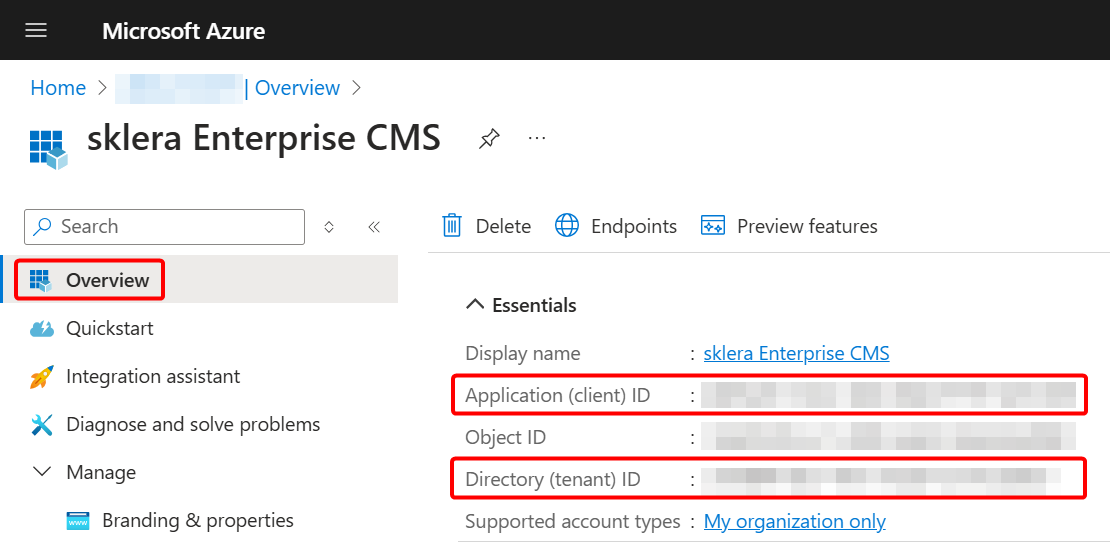 Application (client) ID, Directory (tenant) ID kopieren und gesichert an sklera GmbH übermitteln: