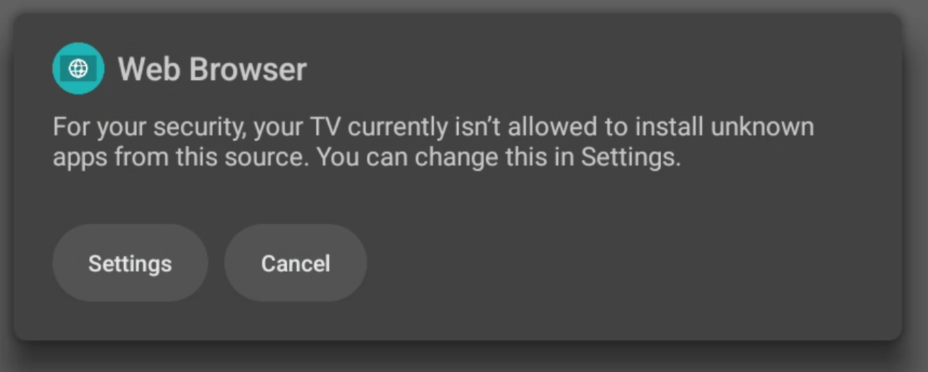 - Es erscheint eine Warnmeldung, dass das Display aus Sicherheitsgründen keine Fremdapps installieren darf. Klicken Sie auf 'Settings/Einstellungen'