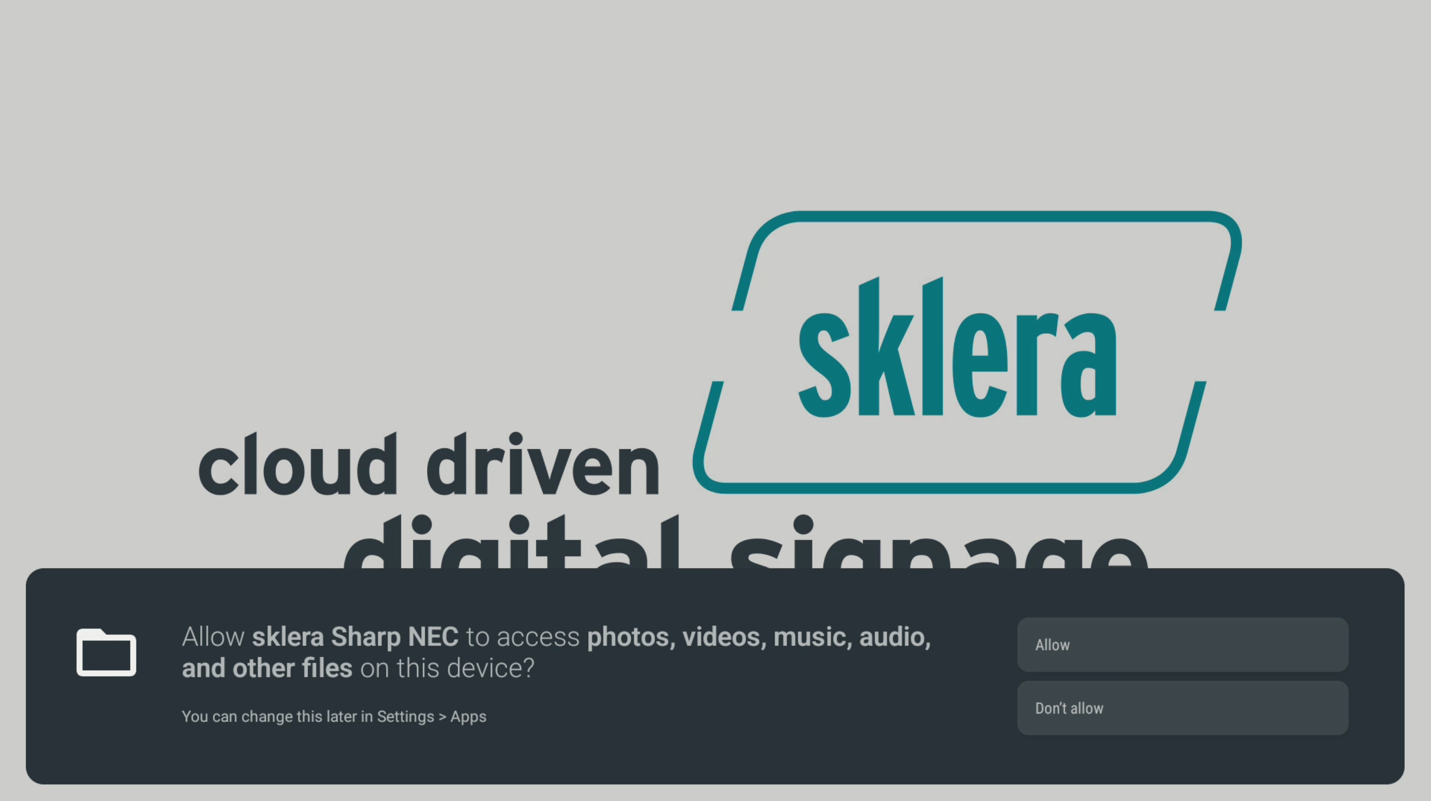 https://start.sklera.tv/app/android/nec/download - Sobald die APK-Datei heruntergeladen ist bestätigen Sie mittels 'Open/Öffnen'