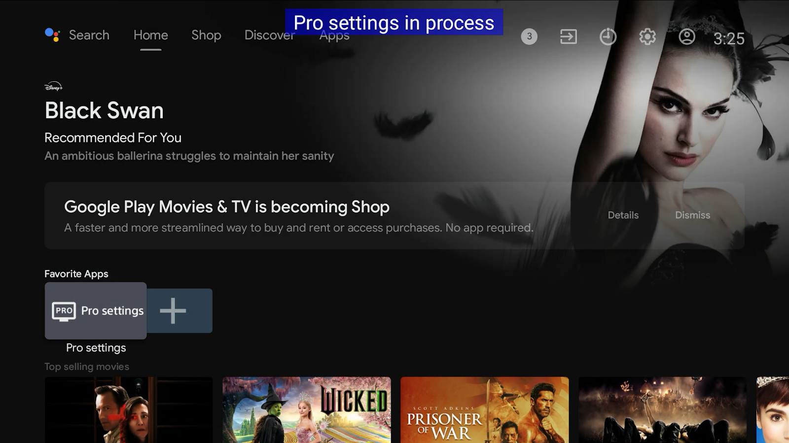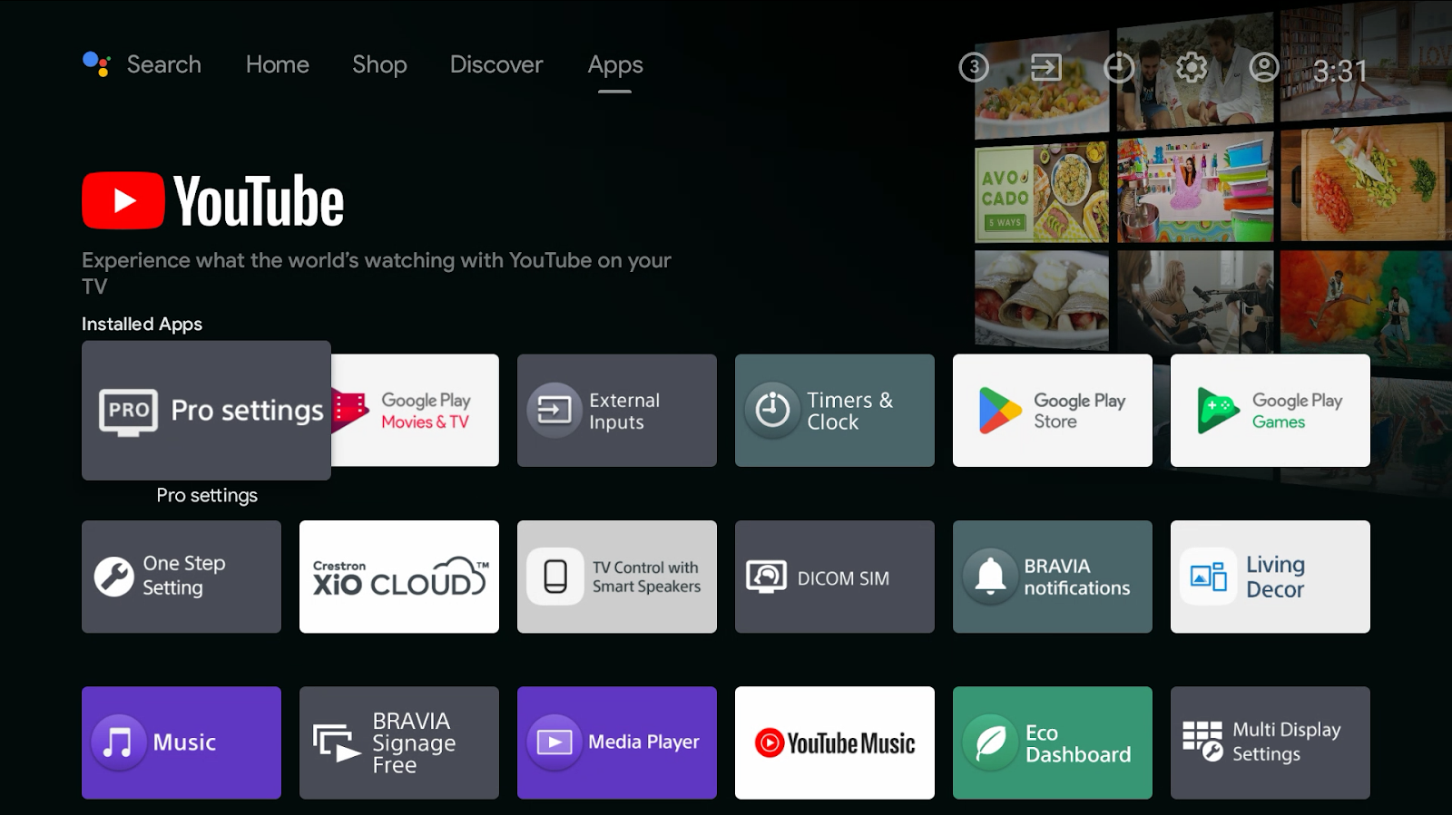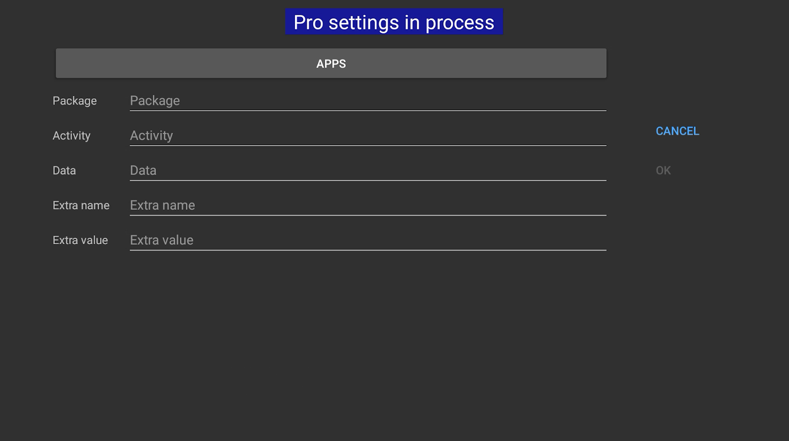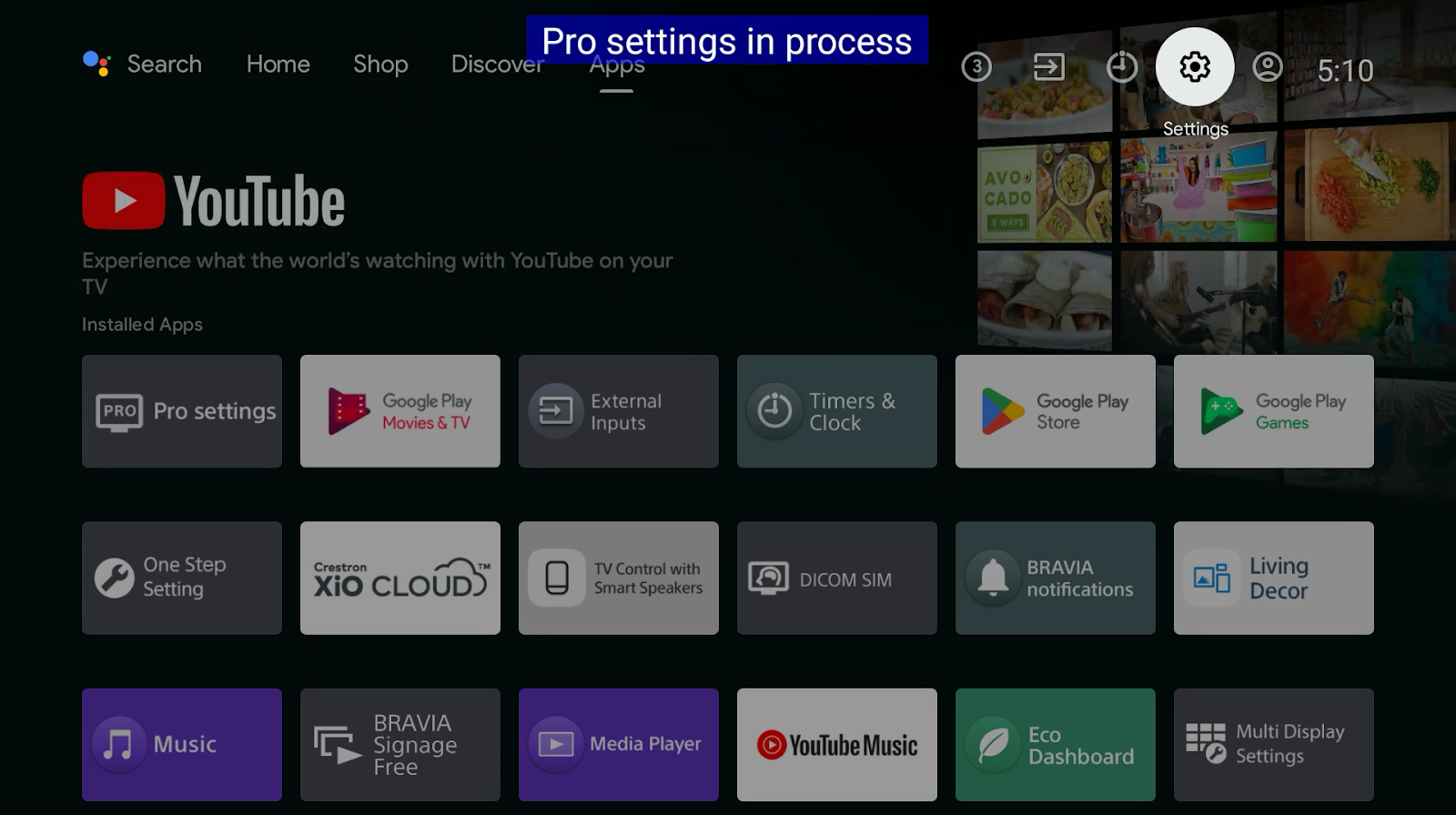 - Öffnen Sie die "Pro settings" App, indem Sie Apps > Pro settings auswählen.