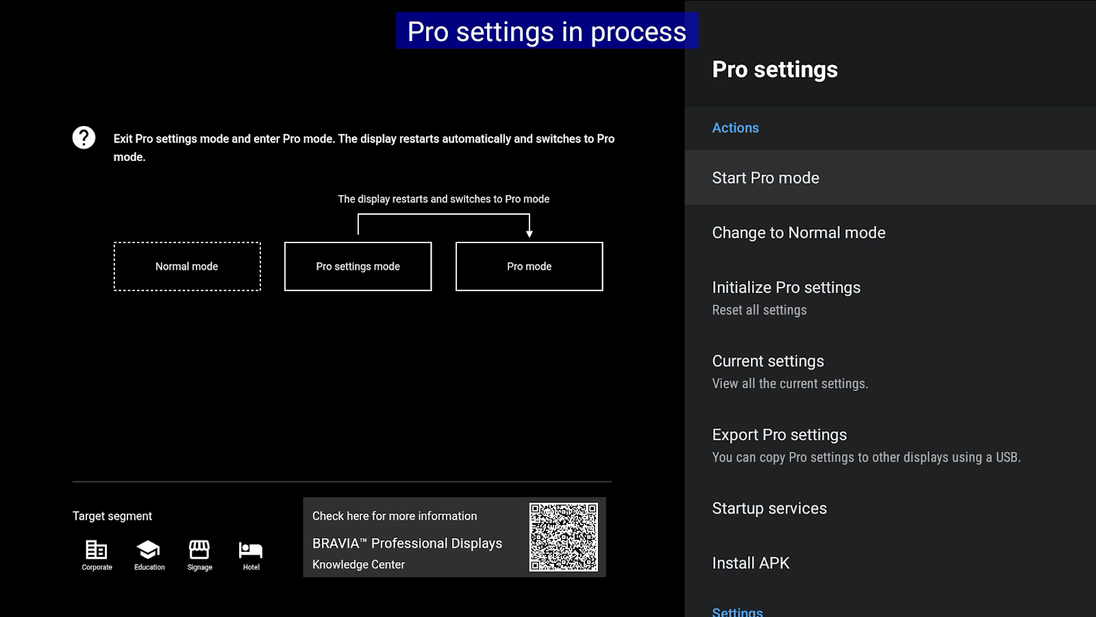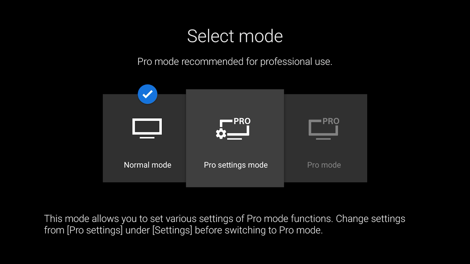 - Öffnen Sie dazu erneut die Pro settings App und wählen Sie Start Pro mode.