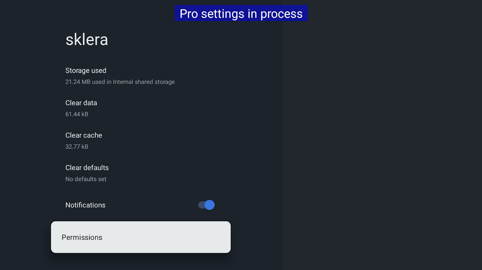 - Die sklera App benötigt die Erlaubnis im "Pro Mode" ausgeführt zu werden.