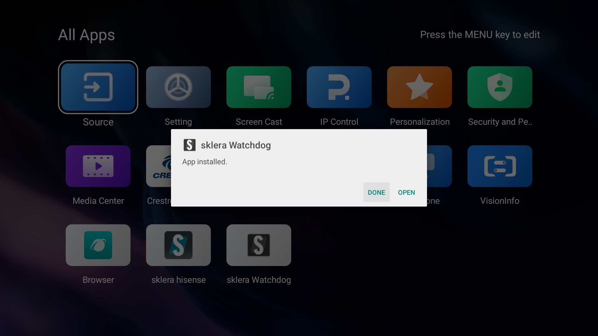 Auf Geräten der Hisense DM Serie mit Android 11 kann optional die sklera Android Watchdog App installiert werden.