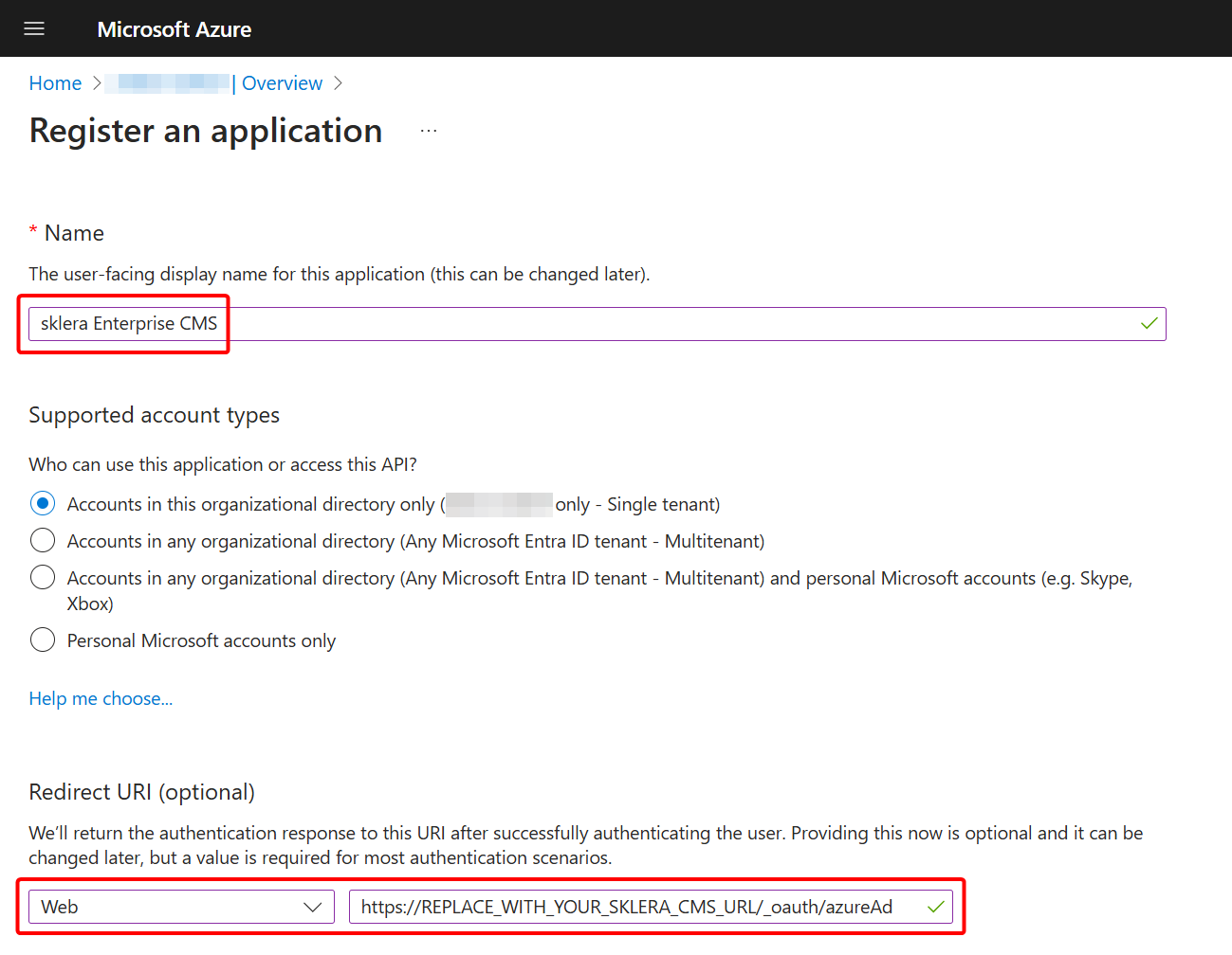 To connect to your Entra ID/ Azure AD it is required to register sklera as a new company app within Azure. Please use the following settings: