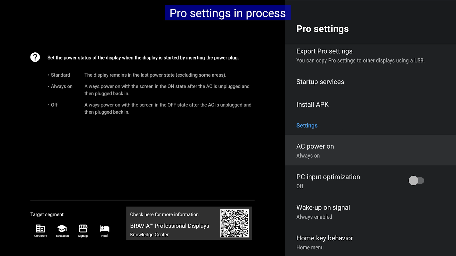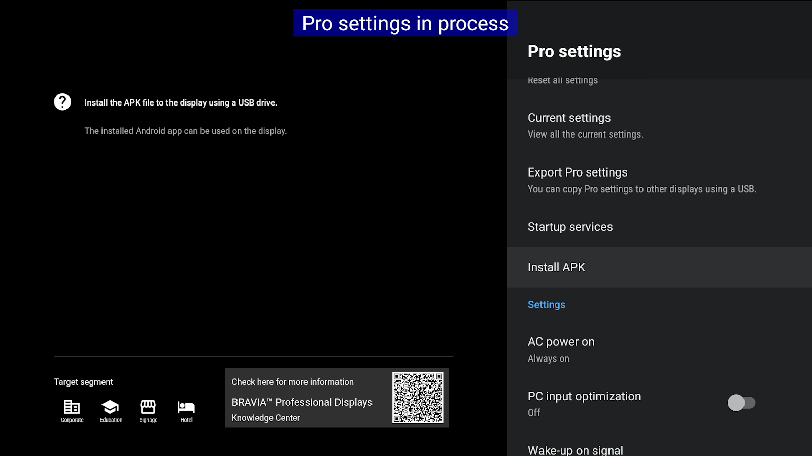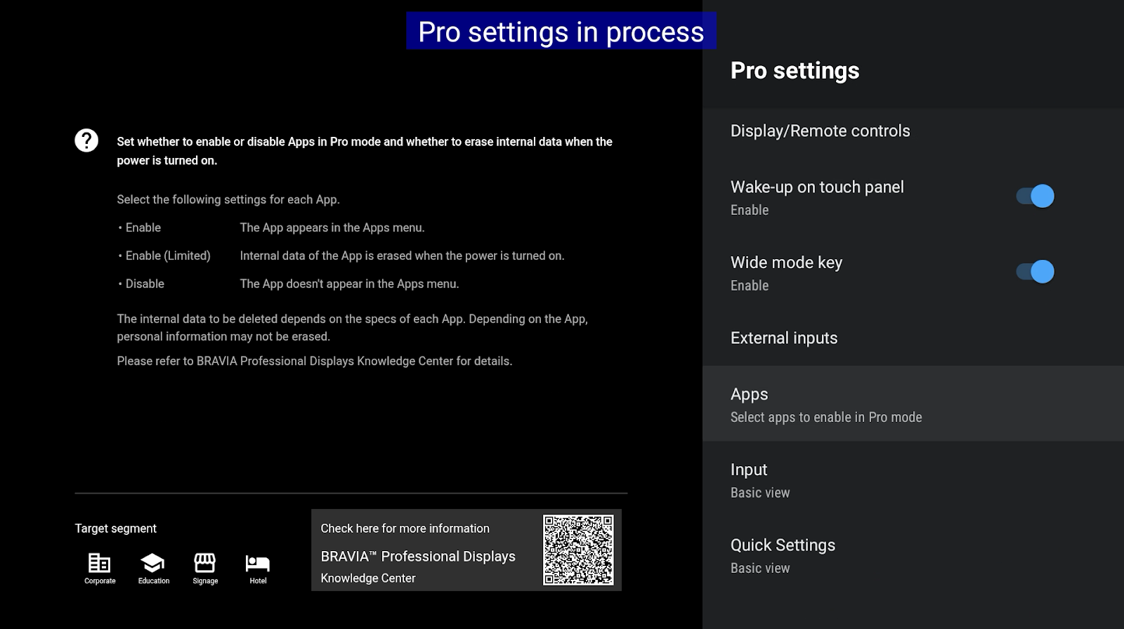 - Exit the Pro settings app using the EXIT button on the remote control.