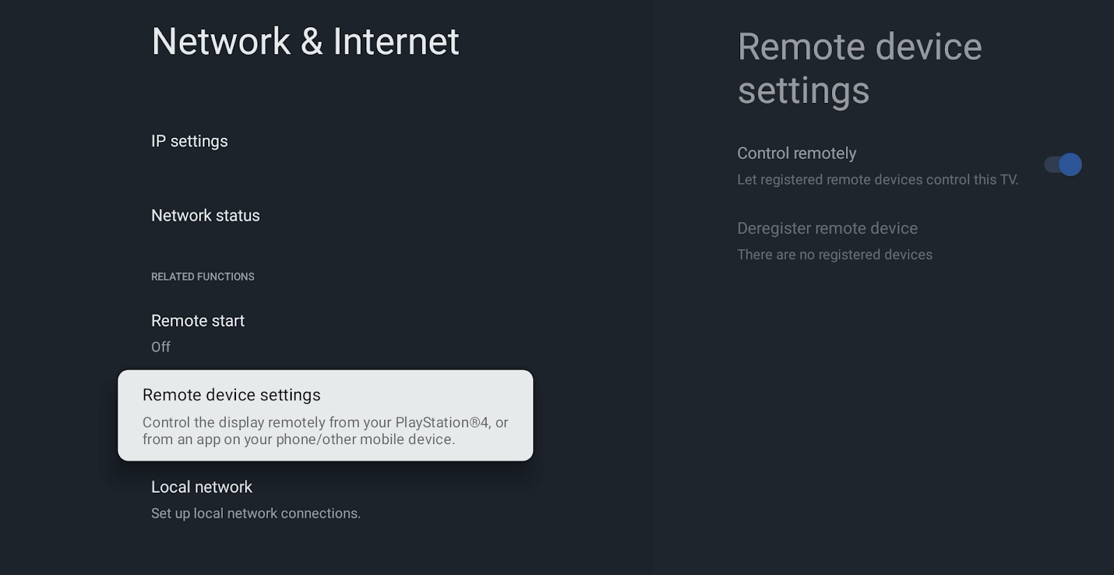 - Scroll down, select Network & Internet, then go to Remote device settings and enable the option Control remotely.