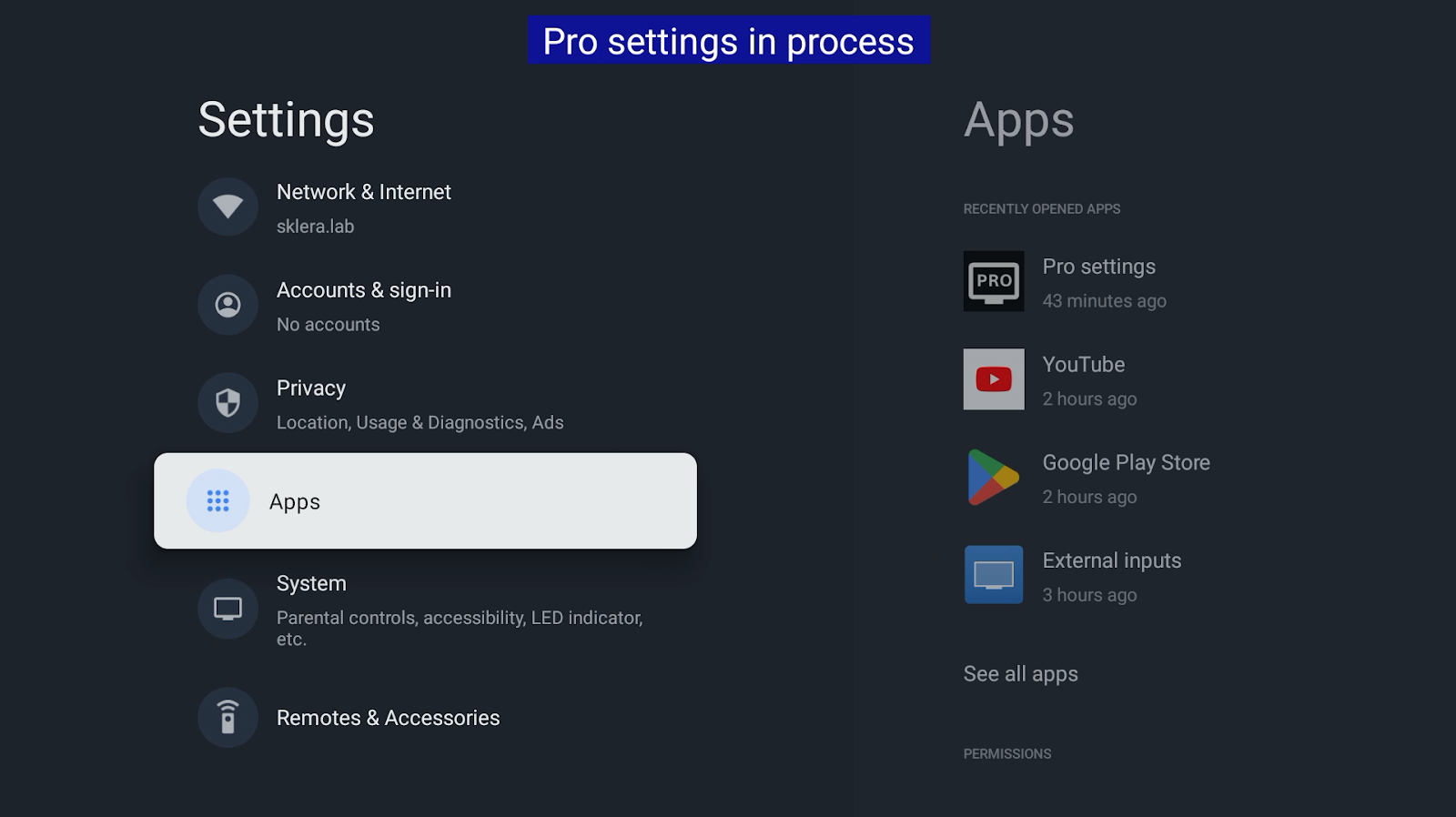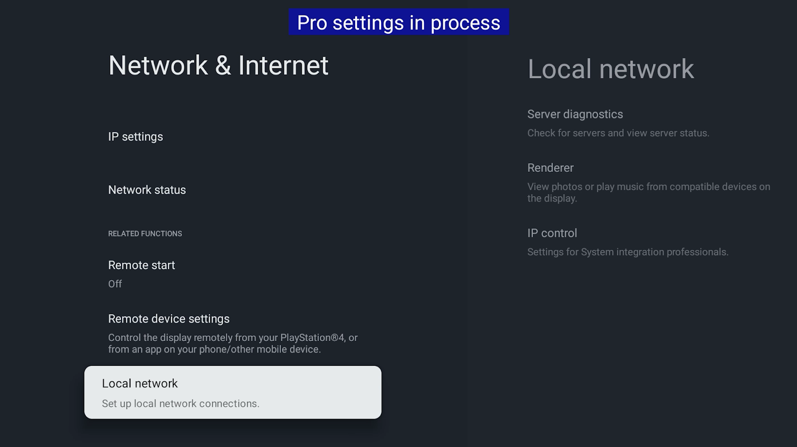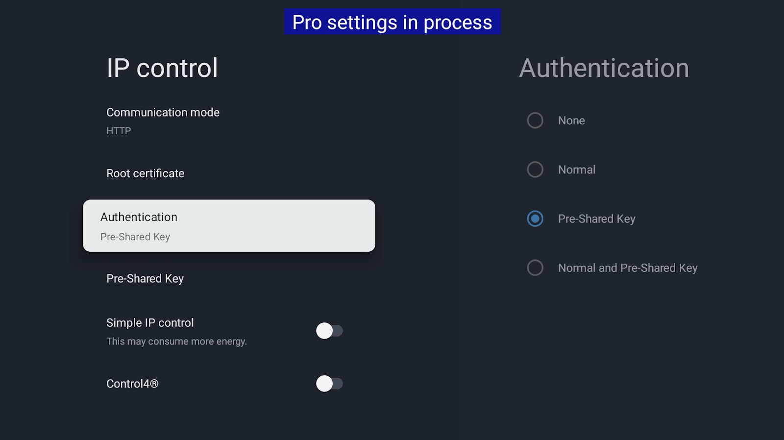 Note: You can also put the device into Pro settings mode by entering the following sequence on the remote: Info > Mute > Volume Up > Home.