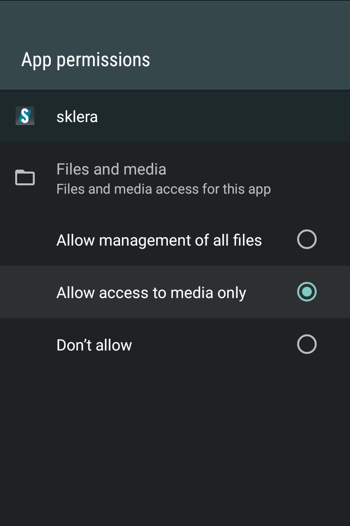 - Then select Files and Media>Allow access to media only or Allow management of all files.