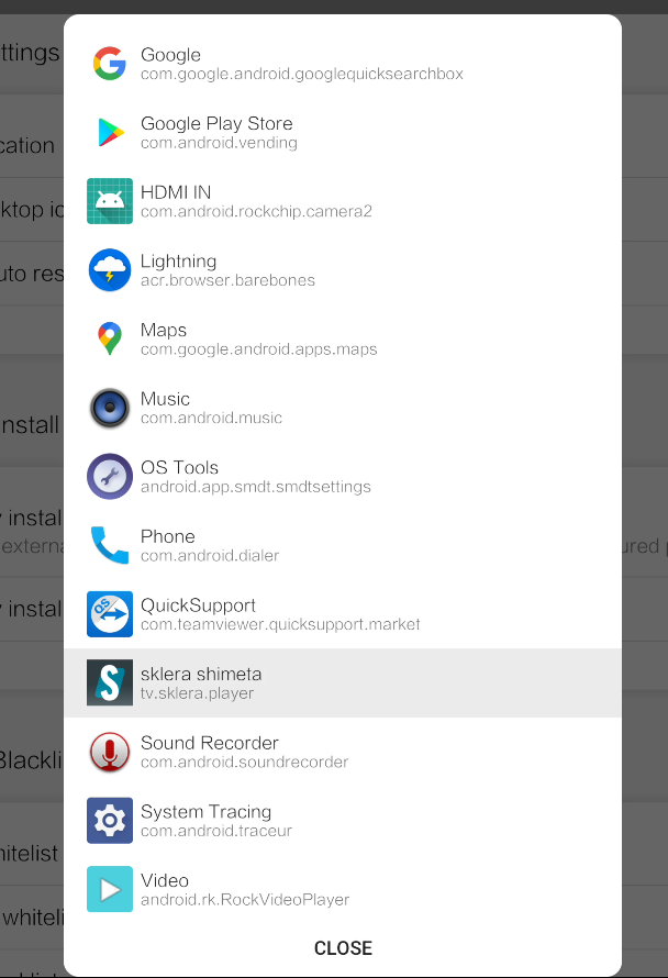 - Select the sklera Player app from the list of apps.